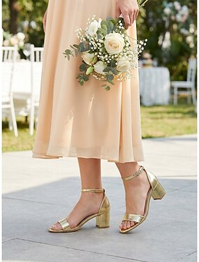 Sandali da donna con tacco a blocco dorato, eleganti scarpe da damigella per matrimoni in giardino, comodi tacchi per cerimonie all'aperto