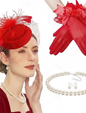 Guanti Collana Cappello Fascinator Gentildonna Costume Per donna Mascherata Feste Ascot Festival delle corse di cavalli Adulti Copricapo Tutte le stagioni