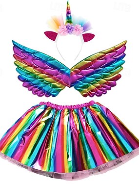 vestito unicorno per ragazze film cosplay vestito da vacanza capodanno vestito blu scuro argento dorato ali copricapo natale halloween carnevale poliestere poliestere / cotone giornata mondiale del