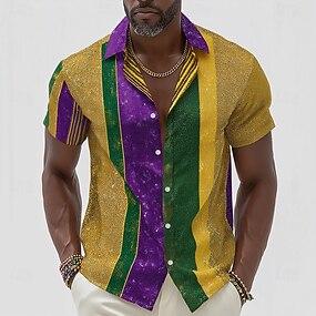 Martedì grasso Per uomo Blocco di colori Carnevale Camicia Camicia con Bottoni Manica Corta Moda Casual Feste Ferie Estate Primavera Collo ripiegato Stampa 3D camicie con colletto Giallo