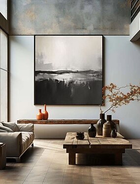 dipinto a mano astratto dipinto a olio in bianco e nero orizzonte monocromo nebbioso foresta scura dipinto paesaggio astratto olio su tela
