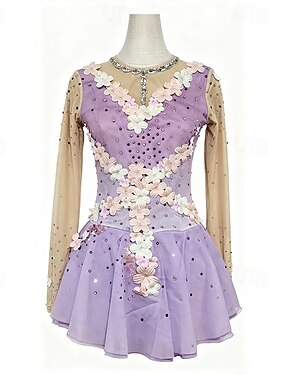 Abito da pattinaggio artistico Per donna Ragazze Pattinaggio sul ghiaccio Vestito Lilla Patchwork Foro per il pollice Rete Spandex Elasticizzato Allenamento Professionale Competizione Vestiti da