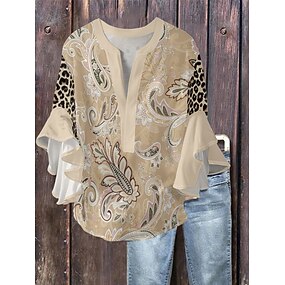 Per donna Blusa Volant Stampato Paisley Elegante Moderno Manica 3/4 Scollo a V Top Regolari Quotidiano Ferie Blu Nero Vino Cachi Estate