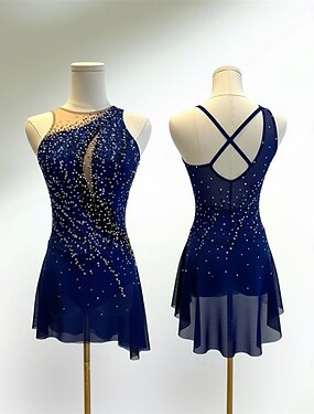 Abito da pattinaggio artistico Per donna Pattinaggio sul ghiaccio Vestito blu navy Patchwork Schiena aperta Elasticizzato Allenamento Competizione Vestiti da pattinaggio sul ghiaccio Classico