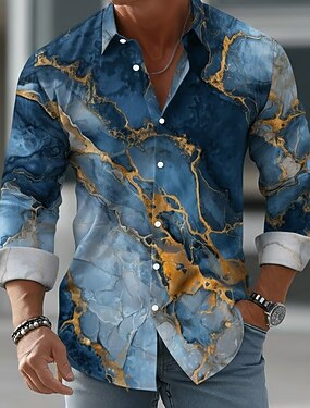 Per uomo Geometrico Marmo Arte liquida astratta Camicia Camicia con Bottoni Camicia casual Manica Lunga Moda Casual All'aperto Abbigliamento Quotidiano Primavera Autunno Collo ripiegato Stampa 3D
