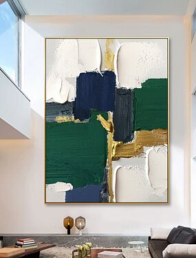 dipinto a olio fatto a mano su tela, decorazione da parete, olio denso, astratto verde per arredamento casa, dipinto appeso su telaio teso/dipinto arrotolato senza cornice