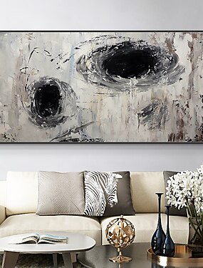 dipinto astratto wabi sabi in bianco e nero fatto a mano, opera d'arte murale, pittura a olio astratta moderna, figure geometriche, arte murale per la decorazione della casa