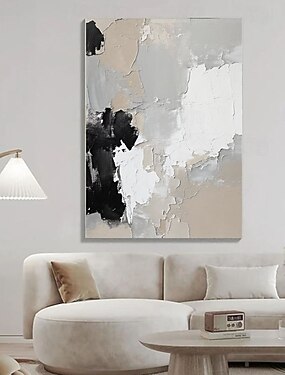 dipinti ad olio con texture bianca, arte murale fatta a mano, pittura astratta in bianco e nero, pittura su tela con texture bianca, arte murale wabisbai, pittura minimalista, decorazione murale