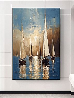 dipinto di barca a vela fatto a mano, paesaggio marino astratto, pittura a olio acrilica testurizzata, barche a vela testurizzate, arte murale, arte astratta dell'oceano