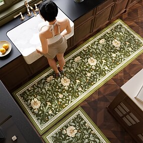 Tappetino da cucina in stile country, tappeto in pelle impermeabile e resistente all'usura, facile da pulire, personalizzabile, non lavabile, durevole ed elegante per cucina e sala da pranzo