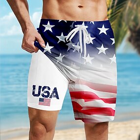 Shorts foderati patriottici con bandiera americana per uomo per il Giorno dell'Indipendenza pantaloni da spiaggia 2 in 1 costumi da bagno altezza media vacanza tasche laterali con fodera a