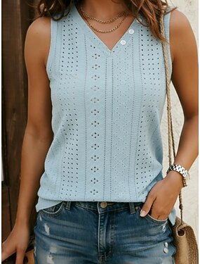 Per donna Blusa con texture Top traforato Maglietta traforata Blusa Traforato Semplice Vintage Elegante Senza Maniche Scollo a V Top Regolari Casuale Quotidiano All'aperto Blu Rosa cipria Nero Bianco