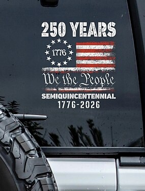 Adesivo per finestrino auto 250° anniversario USA, adesivi patriottici per il semiquincentenario dell'America 1776-2026, adesivi con bandiera dell'indipendenza USA, adesivi in vinile resistenti per finestrini auto