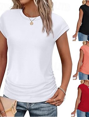 Blusa da donna in 100% cotone di colore solido elegante casual maniche corte scollatura a V top regolari quotidiani vacanze bottoni nero blu viola verde beige estate primavera