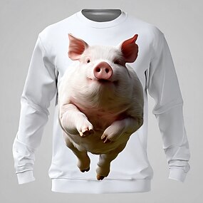 Per uomo Divertente Maiale Felpa Casual Manica Lunga Girocollo Bianco 1 Bianco Girocollo 3D Tutte le stagioni progettista S M L XL XXL XXXL