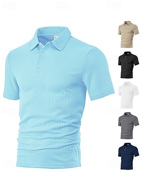 Per uomo Polo a maglia intrecciata Testurizzato Casuale Vacanza Bavero Manica Corta Moda Moderno Semplice Bottoni Traspirante Estate Primavera Nero Bianco Blu marino Cachi Grigio Azzurro Polo a