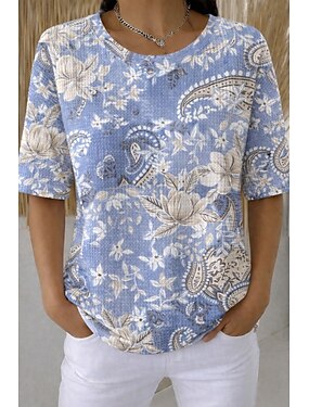 Per donna Canotta Amore Floreale Piante Moda Moderno Casual Manica Corta Scollo a V Top Regolari Quotidiano Weekend Rosa Albicocca Azzurro Estate Primavera