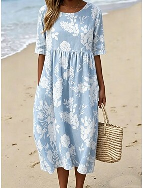 Per donna Abito Midi Tubino Vestito T-Shirt Abito a trapezio Abito Estivo Vacanza Casual Boho Quotidiano Abito Estivo Abito Primaverile Vestibilità comoda Floreale Grafico Manica Corta Girocollo