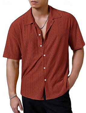 Per uomo Camicia Camicia casual Camicia con Bottoni Camicia Jacquard Nero Bianco Borgogna Arancione Azzurro Manica Corta Semplice Colletto a Camicia Casuale Quotidiano Bottoni Abbigliamento Vacanza