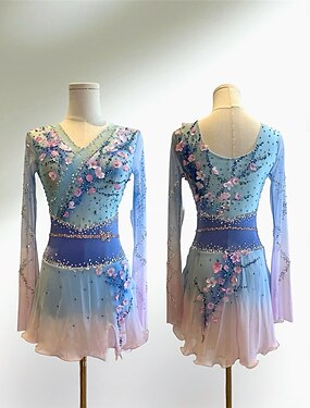 Abito da pattinaggio artistico Per donna Ragazze Pattinaggio sul ghiaccio Vestito Azzurro cielo Patchwork tintura sfumata Spandex Rete Alta elasticità Allenamento Competizione Vestiti da pattinaggio