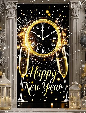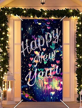 Capodanno Poster Copertura della porta Banner per esterni Buon anno 2026 Carino 3D Da serata Dormitorio Stanza per adolescenti Dormitorio universitario Ragazzi Man Cave Frat Bedroom Sfondi di ripresa
