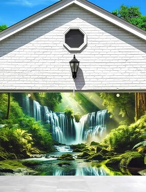 Copertura per porta del garage Grande appeso 森林 Cascata Rustico 3D Da serata All'aperto Sfondi di ripresa Porta d'ingresso Decorazioni Parete Porta Sfondo