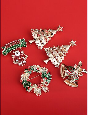 set di spille natalizie con strass da donna: albero festivo, ghirlanda, campanella e spille di Babbo Natale per feste, regali e abiti invernali