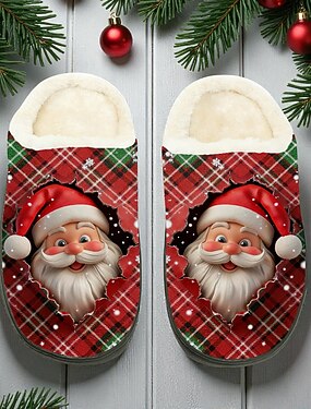 pantofole da uomo con stampa di Babbo Natale - festoso volto di Babbo Natale rosso con luci a LED, comode pantofole di peluche per la mattina di Natale, per rilassarsi e per le vacanze