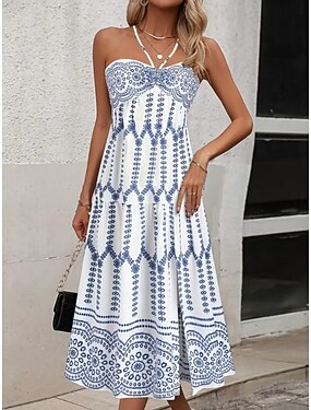 Per donna Abito Midi Abito Boho Vestito Estivo Vestito Casual Abito Sottoveste Elegante Moda Moderno All'aperto Vacanza Uscire Vestibilità regolare Semplice Senza Maniche Senza Spalline Blu Bianco