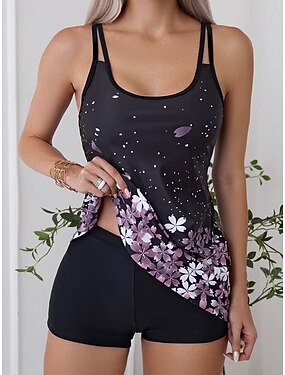 Per donna Costumi da bagno Tankini Due pezzi Vita alta Costume da bagno Vacanza Moda Floreale Grafico Scollo a Cucchiaio Senza Maniche Costumi da bagno