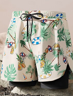 Per uomo Standard Costume da bagno Costume da Bagno Geometrico Coulisse 2 in 1 Con Fodera a Compressione Asciugatura Rapida Elastico Traspirante Senza Maniche Costume da Bagno Pantaloni Surf