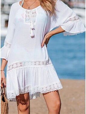 Per donna Mini Abito Abito Bianco Abito da Spiaggia Copricostume Elegante Moda Classico Manica del polsino svasato Quotidiano All'aperto Spiaggia Vestibilità comoda Semplice Mezza Manica Girocollo