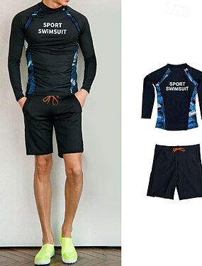 Per uomo Rash Guard in 2 pezzi Maglietta da surf Pantaloncini da bagno Color-blocking Protezione Solare UV Asciugatura Rapida Manica Lunga Costume da Bagno Spiaggia Sport Acquatici Nuoto Primavera