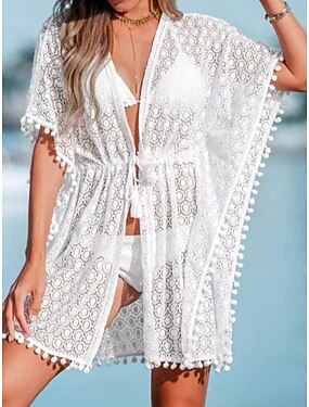 Per donna Mini Abito Abito Bianco Abito da Spiaggia Copricostume Elegante Vintage Moda Manica a pipistrello Quotidiano All'aperto Spiaggia Vestibilità comoda Semplice Manica Corta Scollo a V Bianco