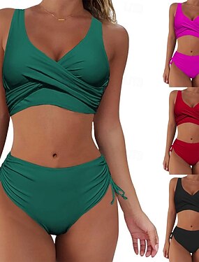Per donna Costume da bagno arricciato Bikini 2 pezzi Tinta unita Protezione UV Elastico Senza Maniche Costume da Bagno Costume da bagno Surf Immersione Nuoto Estate