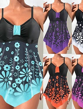 Per donna Costumi da bagno Tankini Due pezzi Birichino Costume da bagno Coulisse Vacanza Abbigliamento da Spiaggia Floreale Grafico All'americana Senza Maniche Costumi da bagno
