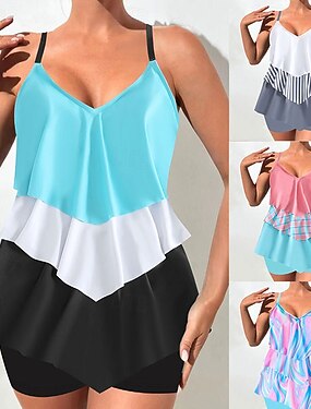 Per donna Costumi da bagno Due pezzi Shorts Costume da bagno Senza schiena Vacanza Abbigliamento da Spiaggia Grafico Blocco di colori Scollo a V Senza Maniche Costumi da bagno