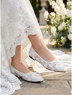 Scarpe da sposa basse da donna in pizzo bianco - eleganti scarpe da matrimonio per cerimonie in giardino