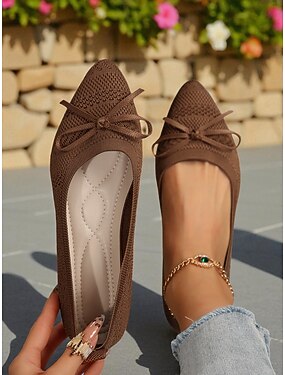 ballerine con fiocco Flyknit da donna: scarpe casual eleganti, leggere e traspiranti, da indossare ogni giorno, passeggiate all'aperto nel parco e picnic primaverili in giardino