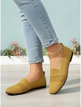 Scarpe da donna gialle in maglia a pianta larga: mocassini comodi, traspiranti e leggeri, scarpe casual morbide e flessibili ideali per viaggiare. &abbigliamento quotidiano