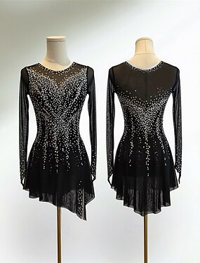 Abito da pattinaggio artistico Per donna Pattinaggio sul ghiaccio Vestito Nero Patchwork Schiena aperta Elasticizzato Allenamento Competizione Vestiti da pattinaggio sul ghiaccio Classico Cristallo