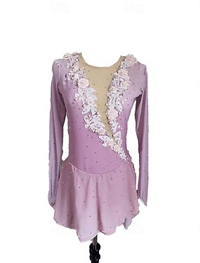 Abito da pattinaggio artistico Per donna Pattinaggio sul ghiaccio Vestito Viola chiaro Patchwork Orlo asimmetrico Elasticizzato Allenamento Competizione Vestiti da pattinaggio sul ghiaccio Classico