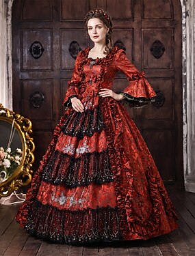 Rococò Barocco Abito da Ballo Lunghezza al pavimento Vestito Abito da Ballo Lunghe Principessa Gentildonna Sposa Floreale Abito da ballo Collo quadrato Costume Per donna Reale Halloween Carnevale