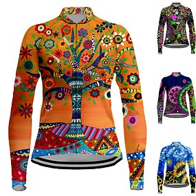 T-shirt donna manica lunga collo rotondo tunica floreale grafica gradient elegante vintage stilosa top regolari stampa quotidiana bianca gialla rossa blu verde scuro autunno preautunnale