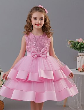 Bambino Da ragazza Abito da damigella Vestito da festa Tinta unica Mezza manica Prestazioni Matrimonio Feste Con lustrini Elegante Dolce Poliestere Maxi Abito in tulle Estate Primavera 3-12 anni