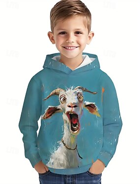 Ragazzi 3D Grafico Animale Pecora Felpa con Cappuccio Maglione Manica Lunga Stampa 3D Primavera Autunno Sport Moda Streetwear Bambini 4-12 Anni Con cappuccio All'aperto Casuale Quotidiano Vestibilit