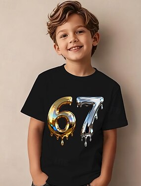 Ragazzi 3D Grafico Gergo divertente 67 Maglietta Manica Corta Stampa 3D Estate Primavera Sport Moda Streetwear Bambini 4-12 Anni Girocollo All'aperto Casuale Quotidiano Vestibilità regolare