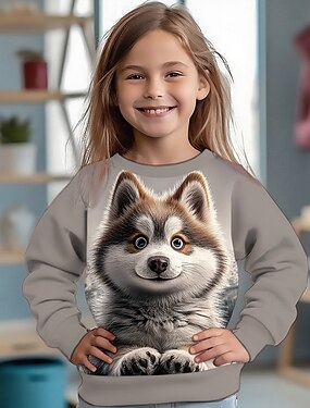 Ragazze 3D Cane Felpa Manica Lunga Primavera Autunno Moda Essenziale Bambini 4-12 Anni Girocollo All'aperto Casuale Quotidiano Vestibilità regolare