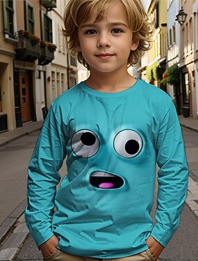 Ragazzi 3D Cartoni animati Maglietta Manica Lunga Primavera Autunno Moda Essenziale Bambini 4-12 Anni Girocollo All'aperto Casuale Quotidiano Vestibilità regolare