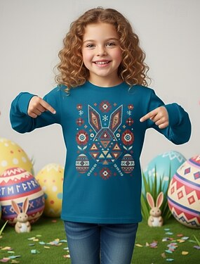 Pasqua Ragazze 3D Grafico Animale Coniglio Maglietta Manica Lunga Primavera Autunno Moda Essenziale Bambini 4-12 Anni Girocollo All'aperto Casuale Quotidiano Vestibilità regolare